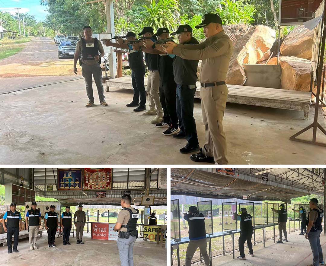 ตม.มุกดาหารฝึกทบทวนความรู้และทักษะ การใช้อาวุธปืนตามยุทธวิธีตำรวจ
