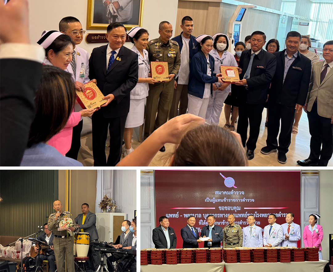 ผบ.ตร.ร่วมนายกสมาคมตำรวจและคณะ ร่วมมอบพิซซ่า-น้ำอัดลมแก่รพ.ตำรวจ
