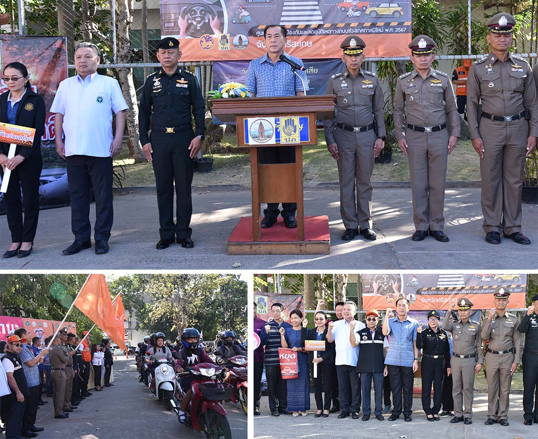 ศรีสะเกษปล่อยขบวนรณรงค์ป้องกันลด อุบัติเหตุทางถนนช่วงปีใหม่2567