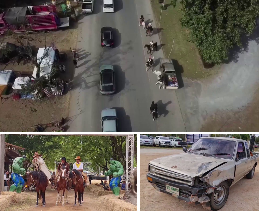 กรุงเทพฯ-เปิดคลิประทึกรถกระบะเบรกแตกพุ่งชนคนขี่ม้าเทศกาลแห่ม้าโคราชพบม้าและคนบาดเจ็บขนม้าติดตัวรถ