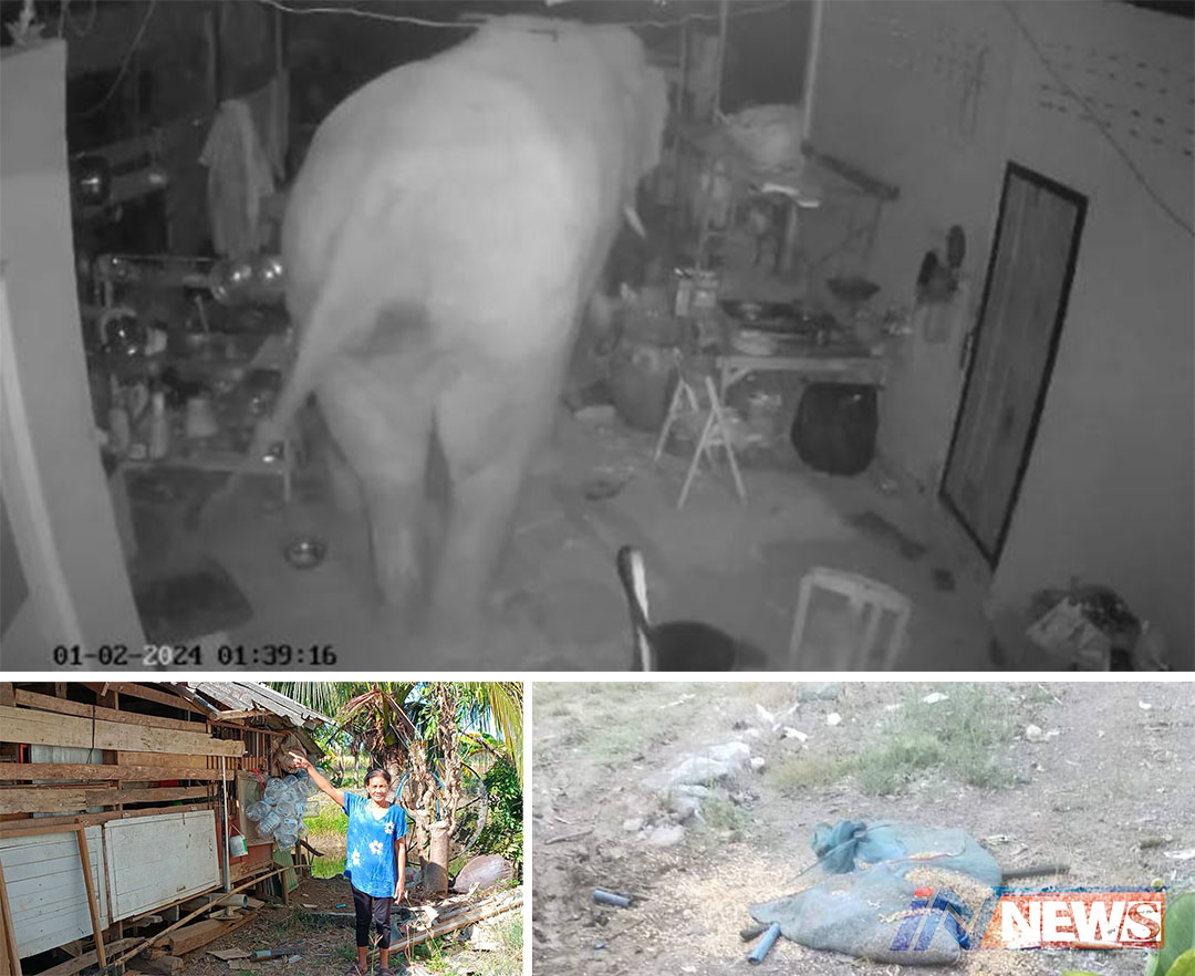กล้องวงจรปิดบันทึกภาพช้างป่าอ่างฤาไน หิวบุกเข้าครัว2หลังรวดขโมยอาหาร