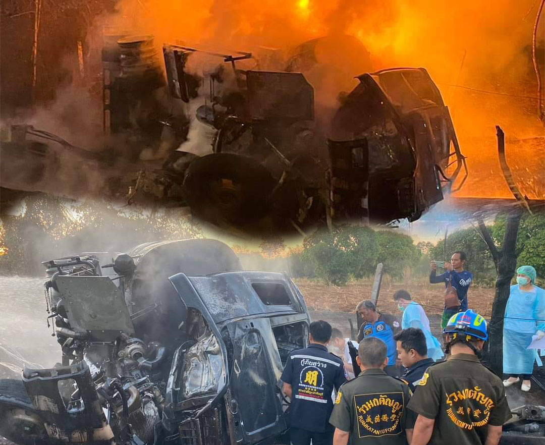 เพลิงไหม้รับต้นปีเผารถน้ำมัน10ล้อวอด ชนเสาไฟปราจีนฯมีผู้เสียชีวิต1ราย