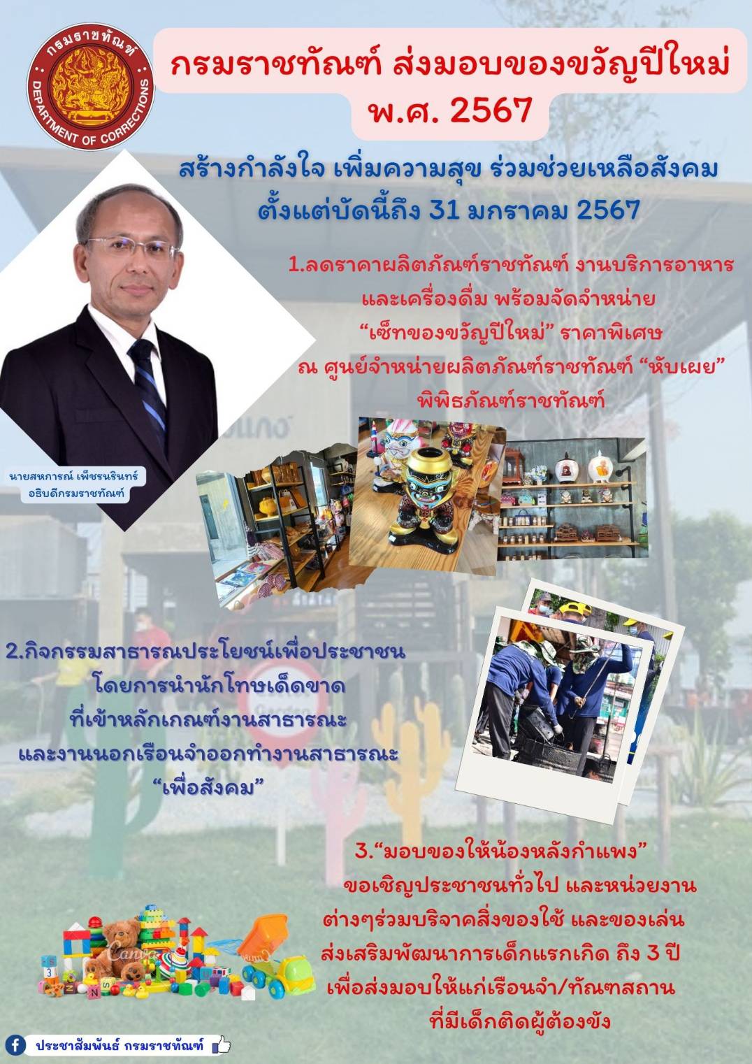 'ราชทัณฑ์'ขอมอบของขวัญปีใหม่2567 ร่วมบำเพ็ญสาธารณประโยชน์ต่อสังคม