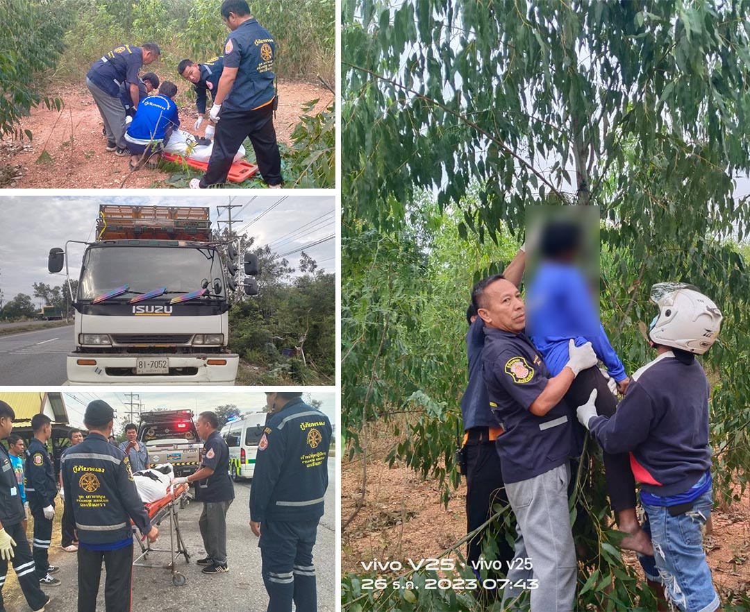 กาญจนบุรี-/โจ๋ 18 กาญจน์ ขับรถพาแม่ไปซื้อผักตลาดศรีเมือง ราชบุรี ขนผักจะไปขายที่ตลาดนัด เกิดหลับรถพุ่งข้ามเลนชนต้นมะขามพ...
