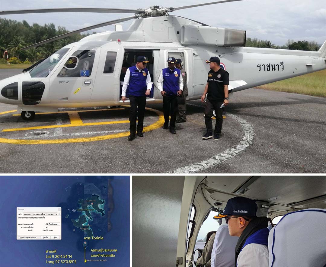 พังงา- ผู้ว่าขึ้นเฮลิคอปเตอร์บินค้นหาผู้สูญหาย 2 ราย เหตุเรือล่มเกาะสุรินทร์วันที่ 4 พร้อมปรับแผนเตรียมนักประดาน้ำลงดำค้...