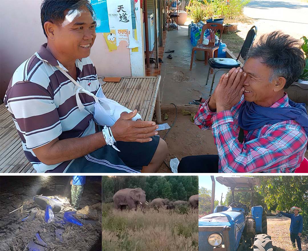 ช้างป่าถูกผลักดันหนักฉุน!ไล่เยียบจยย. หลังวิ่งชนรถยนต์จิตอาสาจนบาดเจ็บ