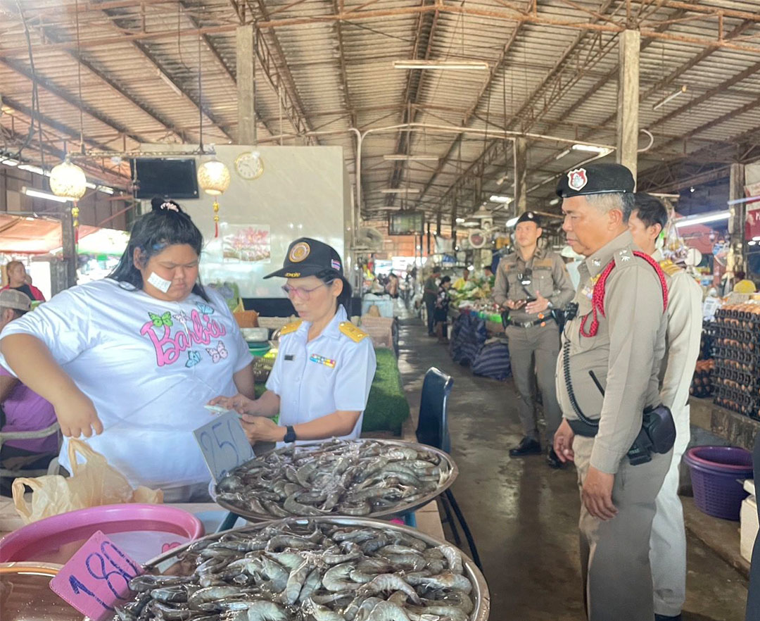ประมงตะกั่วป่าออกตรวจแผงขายกุ้งขาว หลังผู้เลี้ยงกุ้งร้องกุ้งเลี้ยงในบ่อถูกขโมย