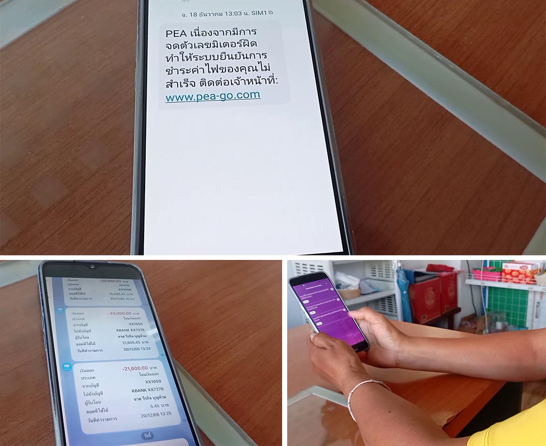 แก๊งคอลฯส่งลิงค์อ้างกฟภ.ยาย81หลงกล ทำตามสูญเงินกว่า7หมื่นเหลือ5บาท