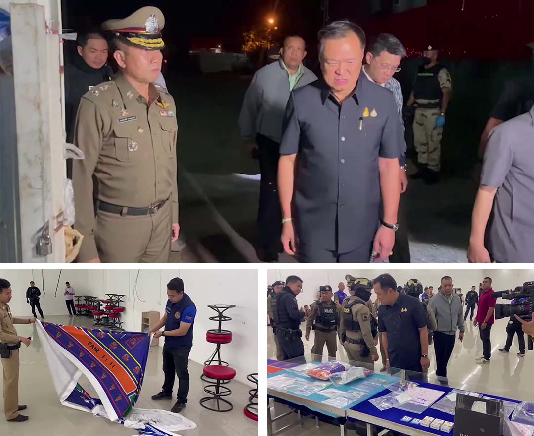 อนุทินรมว.มหาดไทยนำกำลังปกครองและตำรวจบุกบ่อนกลางเมืองโคราช 3 แห่งก่อนปีใหม่พบของกลางรวบคนเฝ้าดูแล
