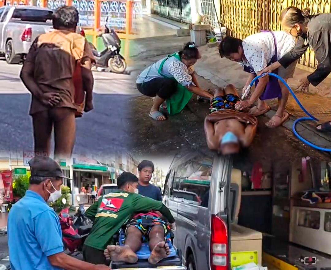 ชายสติไม่ดีขาดยาจนเดินแก้ผ้าตามถนน ชาวนครนายกสงสารตามญาติส่งรักษา