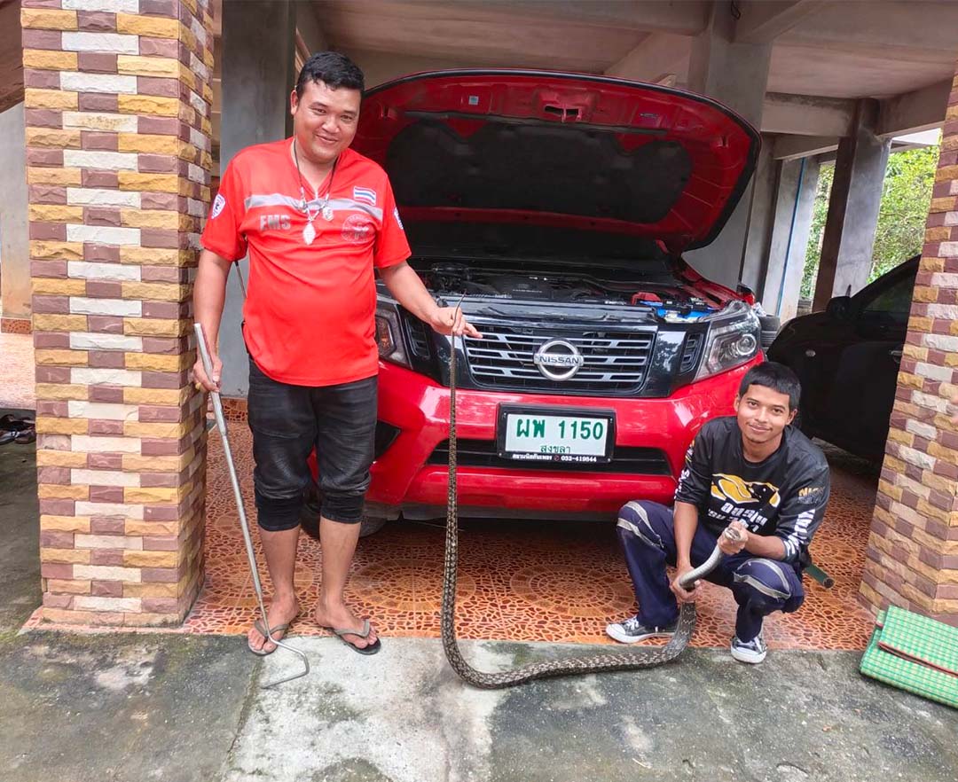 งูสิง3เมตรเลื้อยเข้าห้องเครื่องรถกระบะ คอหวยแห่ตีเลขเด็ดป้ายทะเบียน