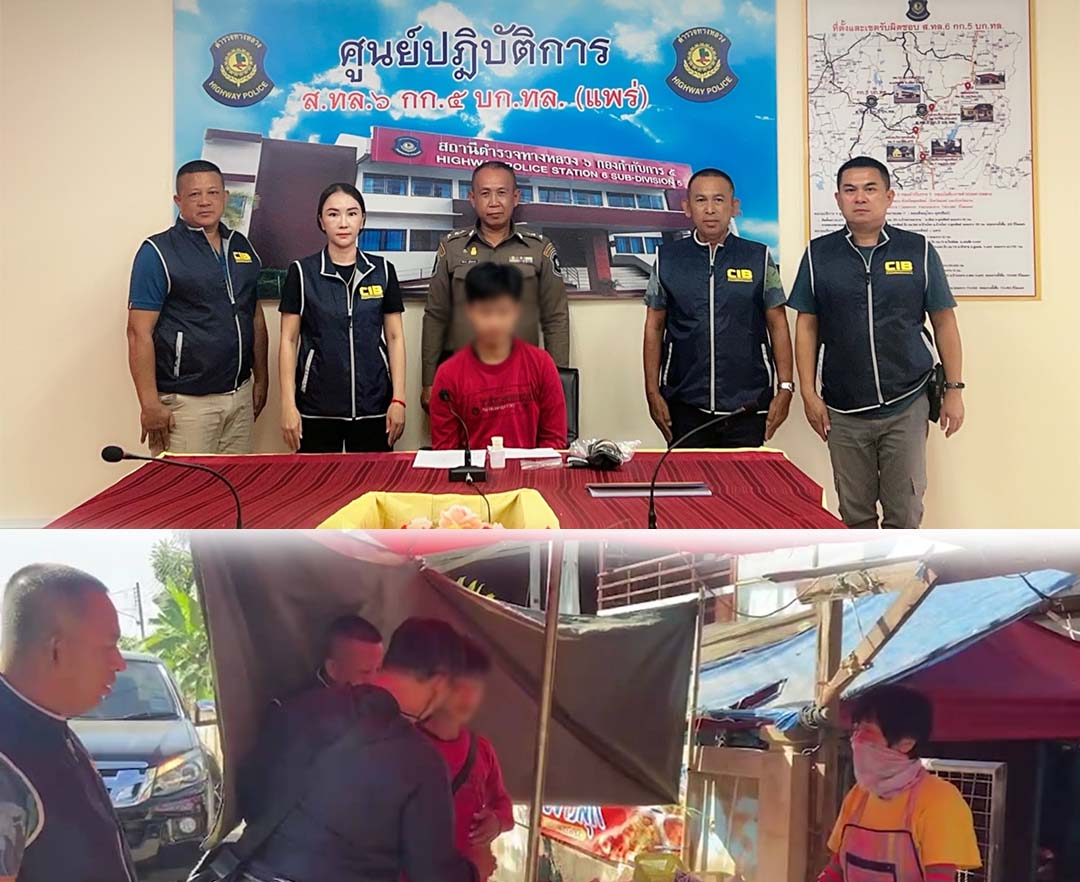 หนีไม่รอด!ตร.ทางหลวงแพร่รวบหนุ่ม30ปี หนีคดีตามหมายศาลจังหวัดแพร่