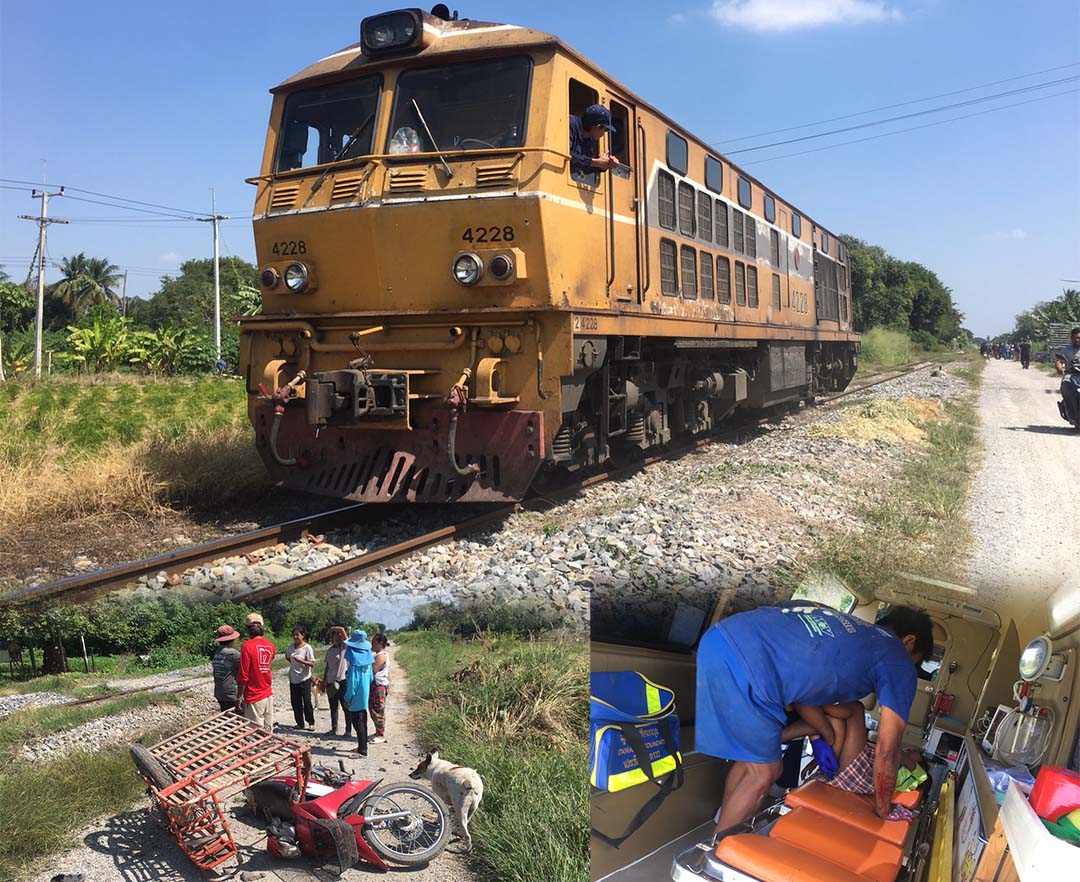 ประมาท!3พี่น้องชาวพม่าขี่ซาเล้งหาญาติ ข้ามทางรถไฟไม่ระวัง!ชนดับ1สาหัส2
