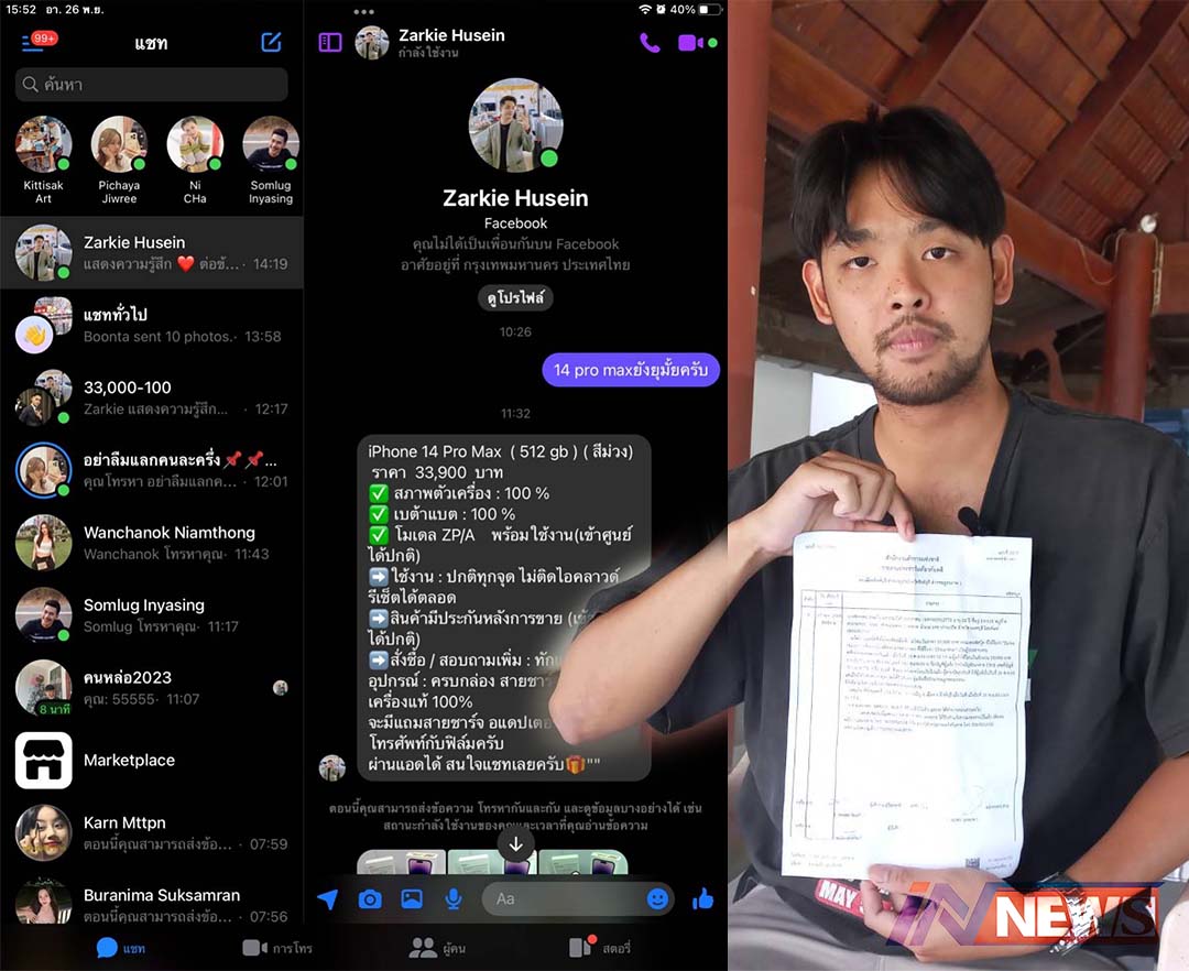 หนุ่มสิงห์บุรีร้องสื่อเก็บเงินซื้อ'ไอโฟน14' เจอเพจมิจฉาชีพหลอกโอนปุ๊ปบล็อคปั๊บ