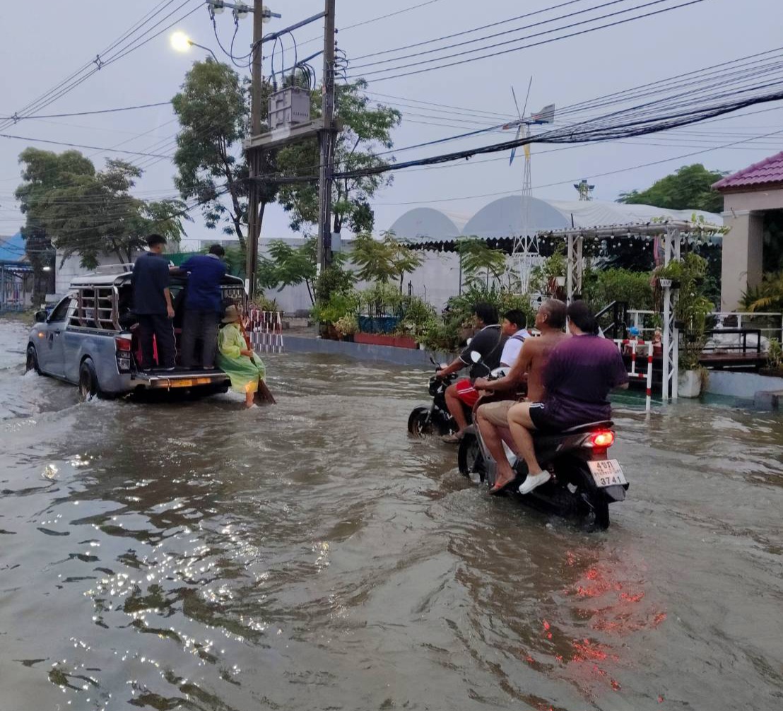 สมุทรปราการ-นายก โต นำเจ้าหน้าที่เร่งระบายน้ำท่วมขังในชุมชน ให้ประชาชนเดินทางได้อย่างสะดวกหลังฝนกระหน่ำในพื้นที่