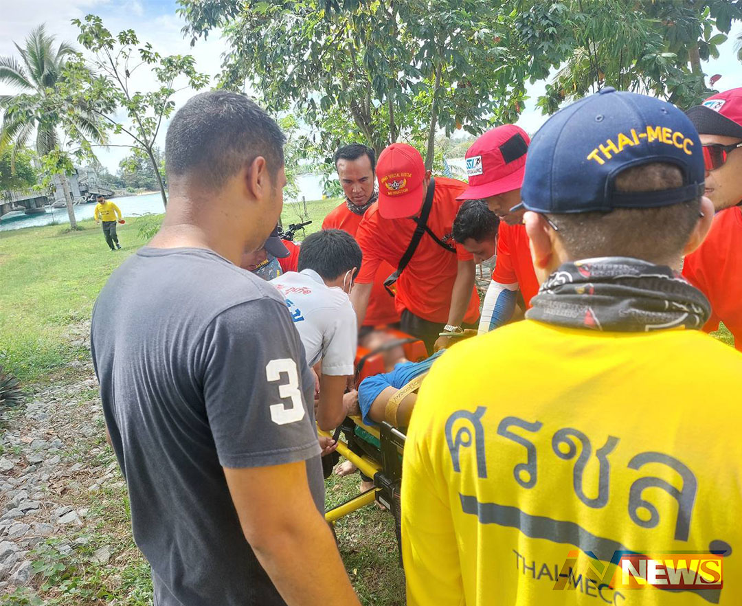 พังงา-นักศึกษาหนุ่มคิดสั้นกระโดดน้ำสะพานสารสินหวังฆ่าตัวตาย ทหารเรือออกค้นพบเรือประมงช่วยชีวิตไว้ได้ ขึ้นรถฉุกเฉินข...