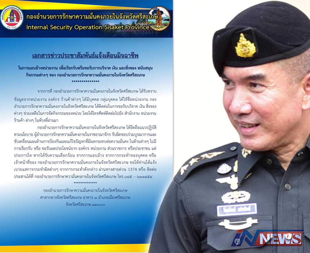 เตือนภัย!ศรีสะเกษมีบุคคลอ้างเป็นทหาร สังกัดกอ.รมน.ตระเวนเรี่ยไรเงินปชช.