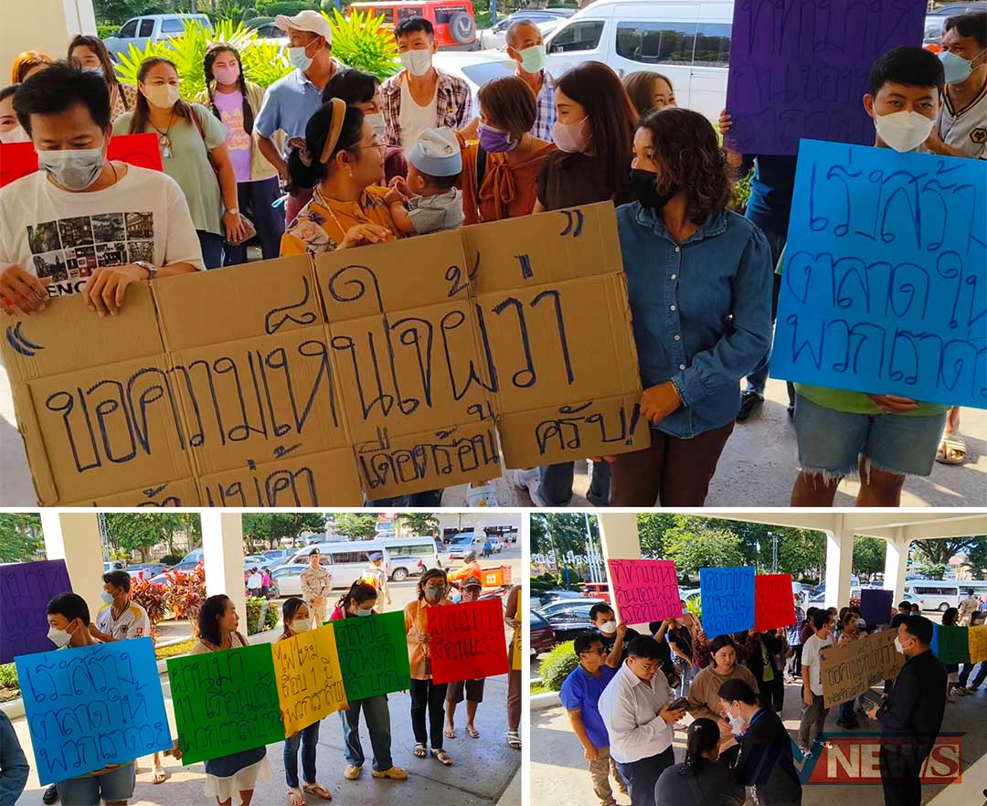 ชาวร้านค้าที่ตลาดบ้านสิงห์-ราชบุรีรวมตัว ชูป้ายขอผู้ว่าฯช่วยสร้างตลาดหลังใหม่