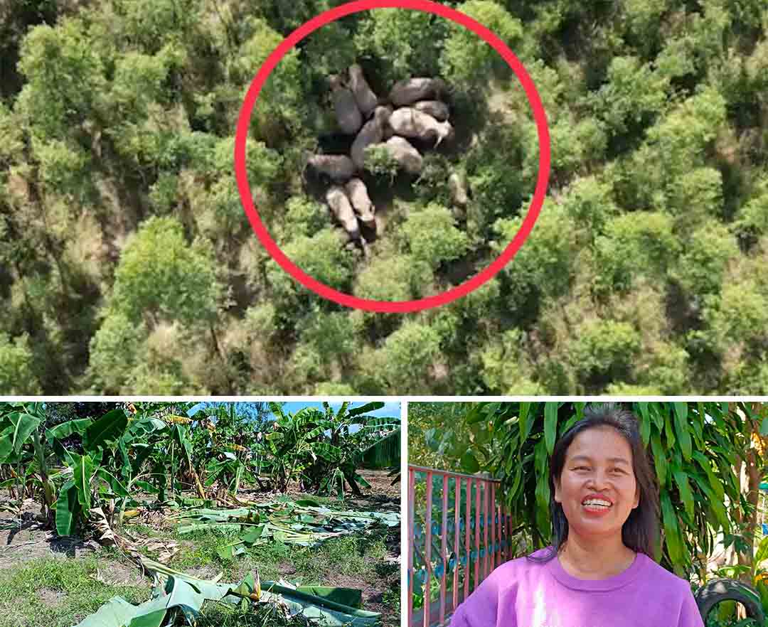 ช้างป่าอ่างฤาไน13ตัวยกโขลงบุกสวนเละ อบต.สาววังท่าช้างเสียดายแต่ทำใจ