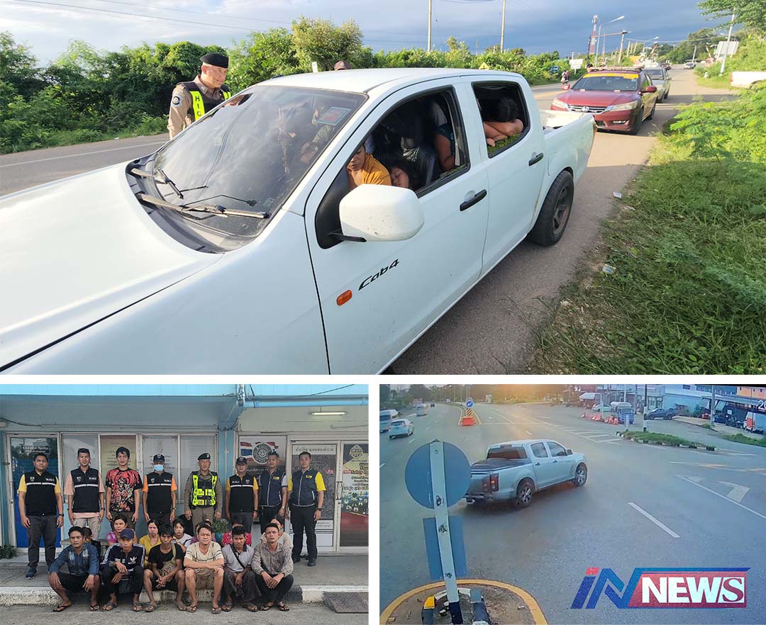 ตร.ทล.กาญจนบุรีจับแรงงานเถื่อนรายวัน รถกระบะขนต่างด้าว16คนหนีเข้าเมือง