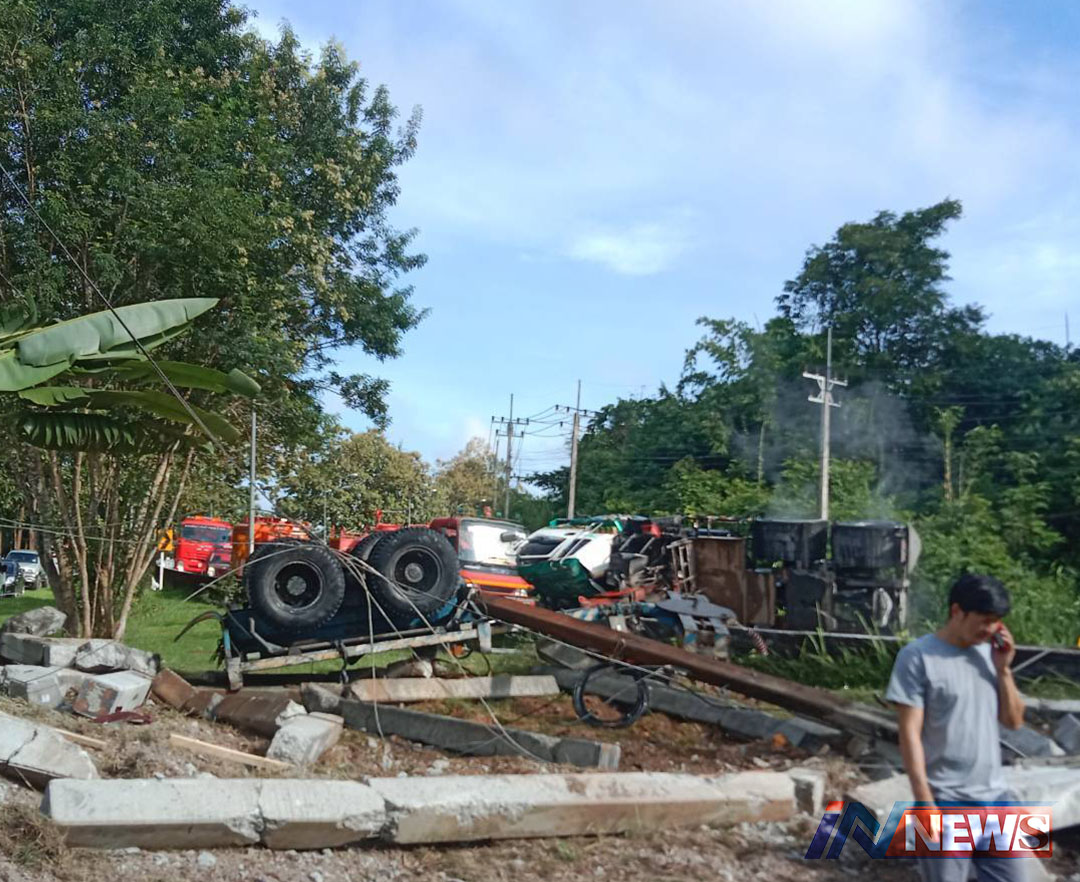 กาญจนบุรี-เสียชีวิตเพราะไม่ชำนาญทาง !!! หนุ่มนครพนม ขับรถเทรลเลอล์ 18 ล้อบรรทุกเสาเข็มมาพลิกคว่ำเสียชีวิตที่ อ.สังขละฯ ก...