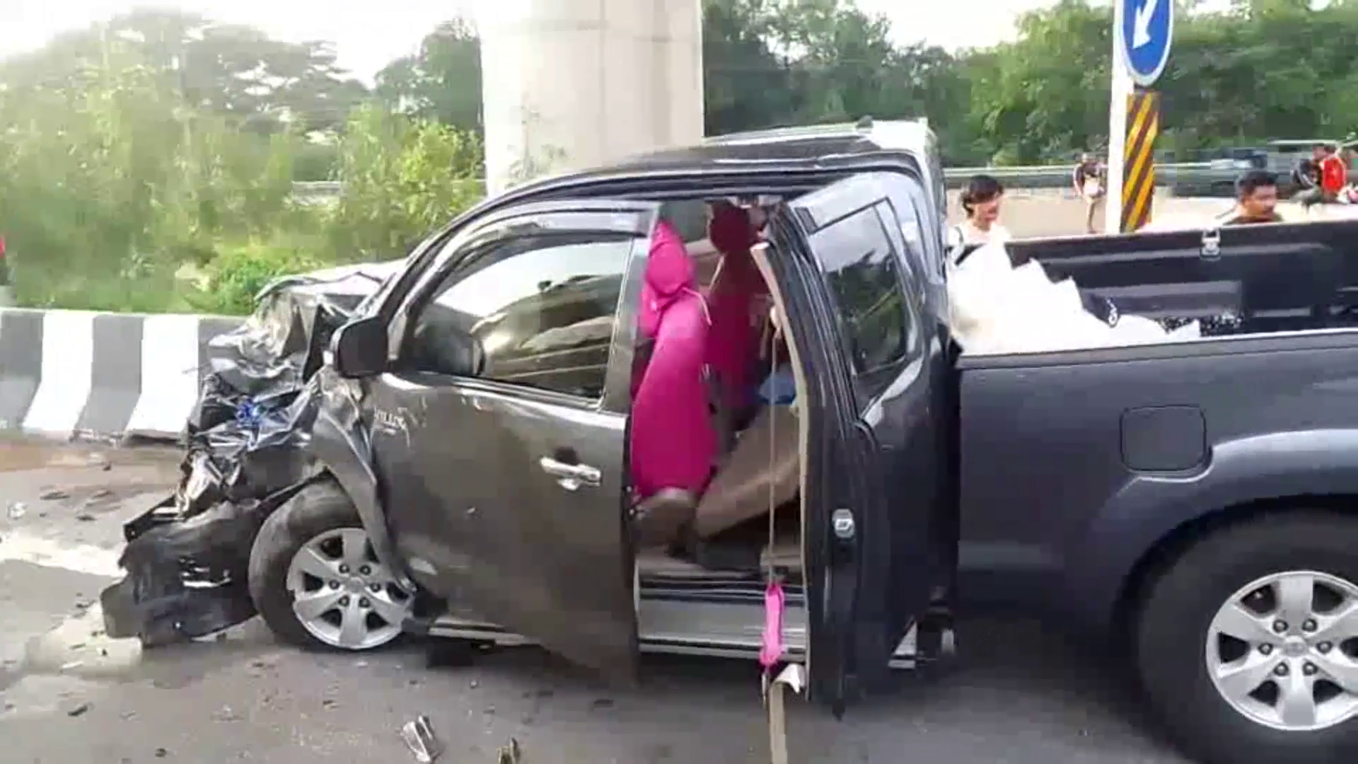 กล้องหน้ารถจับภาพรถบรรทุกดินตัดหน้า รถกระบะพุ่งชนอัดก็อปปี้รถยุบครึ่งคัน