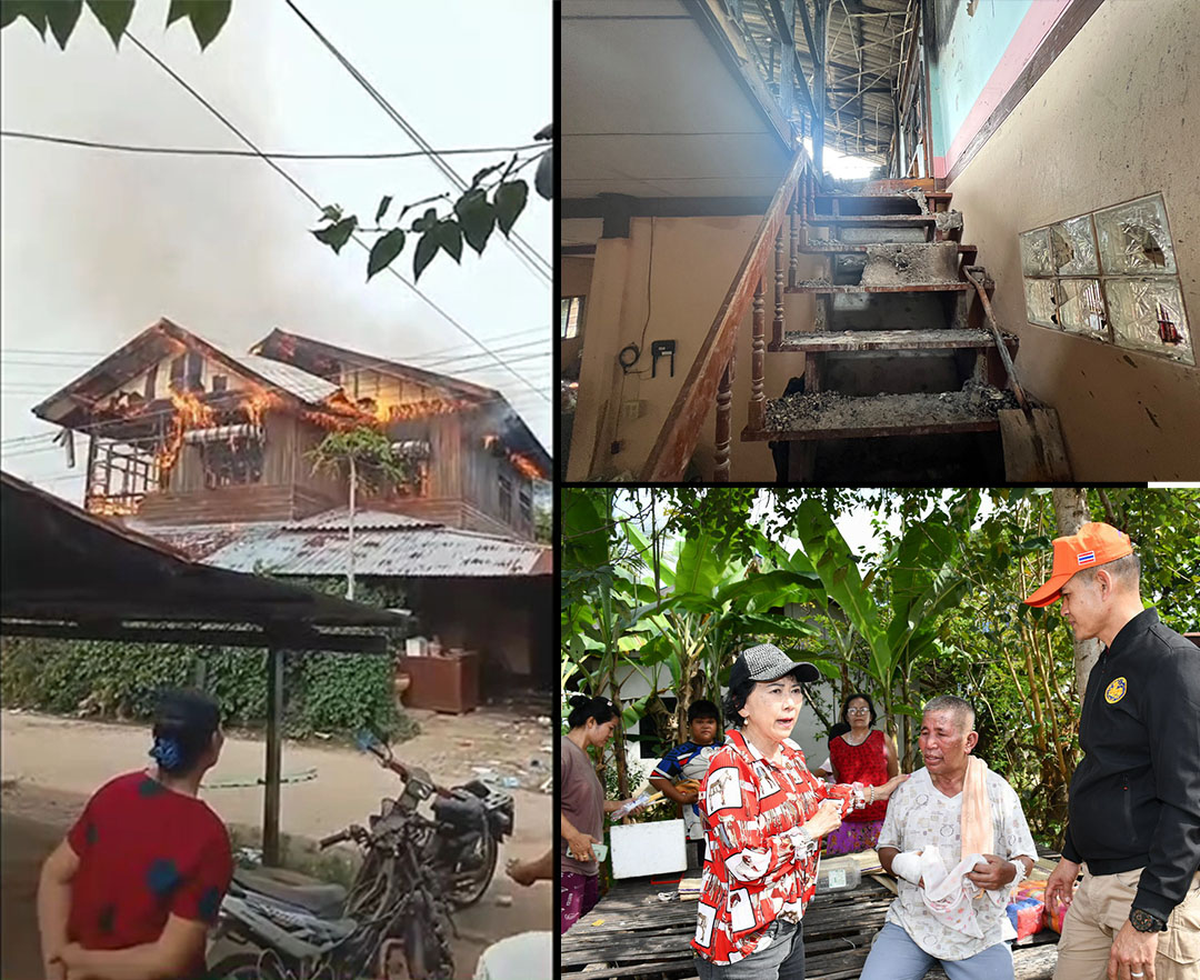 ศรีสะเกษ-ไฟไหม้ร้านขายของชำเฒ่าวัย 70 โดนไฟไหม้ใบหน้าหวิดดับคาบ้าน ทองเงินเก่าบ้านเสียหายกว่า 700,000 บาท ปภ.และดร.กัลยา...
