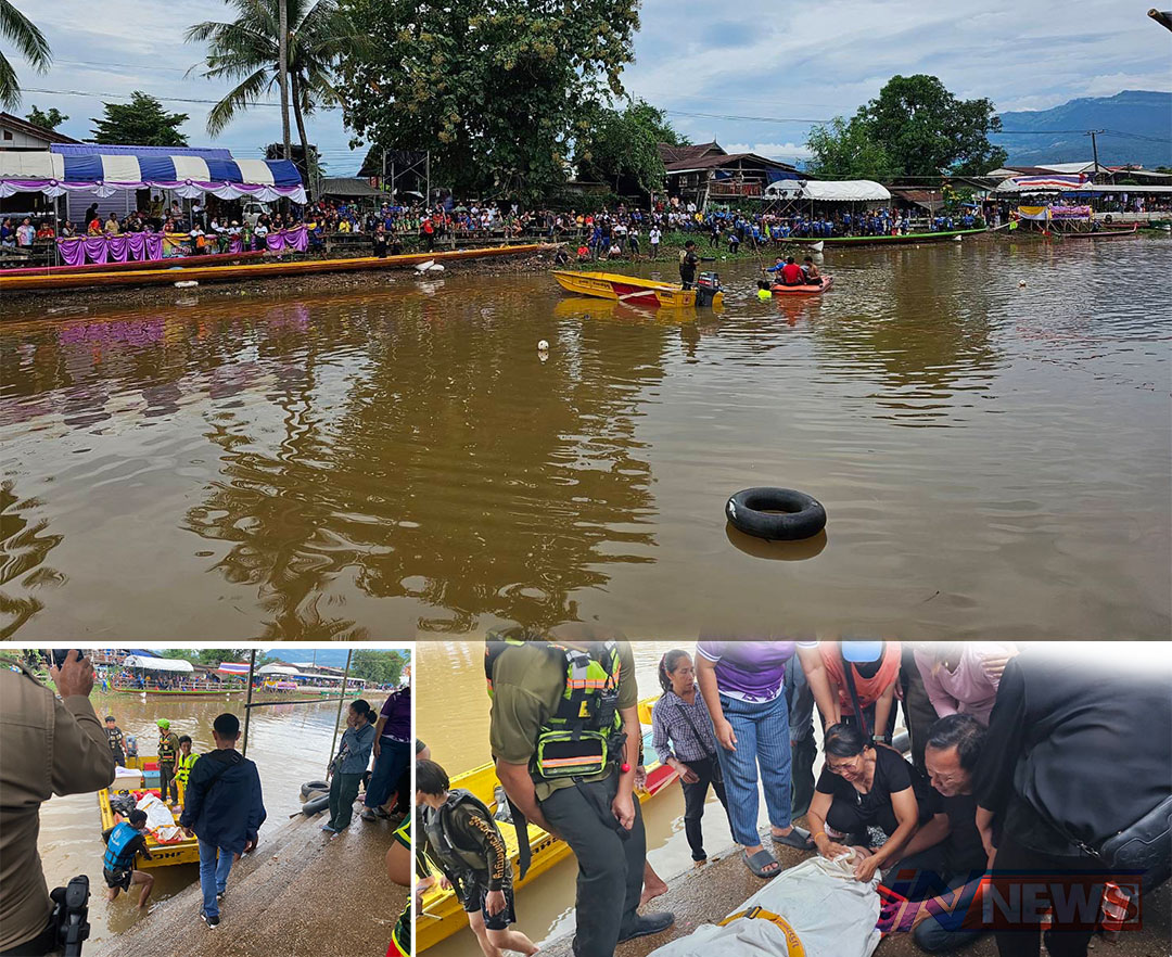 สุดช็อก!หนุ่มฝีพายเรือห้าวว่ายน้ำข้ามฝั่ง จู่ๆจมน้ำหายงานแข่งเรือยาวหล่มเก่า