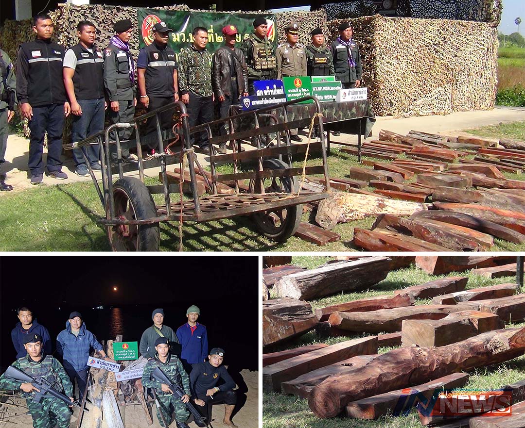'กกล.สุรศักดิ์มนตรีมุกดาหาร'ยึดไม้พะยูง ขณะลักลอบส่งออกไปลาว82ท่อน