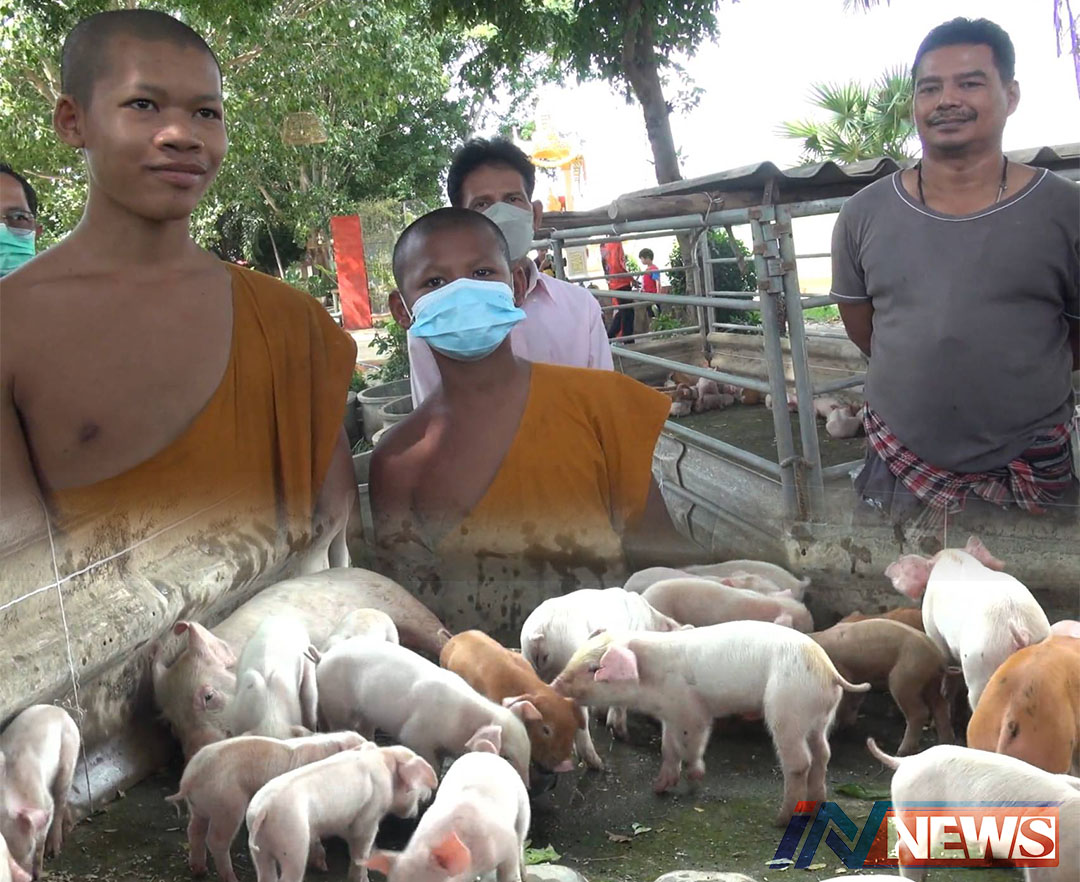 สะเทือนใจ!เณรออกบิณฑบาตพบลูกหมู ถูกปล่อยทิ้งทางเข้าวัด68ตัวมีตาย3ตัว