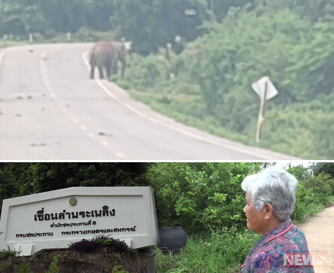ชาวบ้านผวา!ช้างป่าเขาใหญ่ลงหากินไกล ล่าสุดพบที่เขื่อนลำพระเพลิงแล้ว