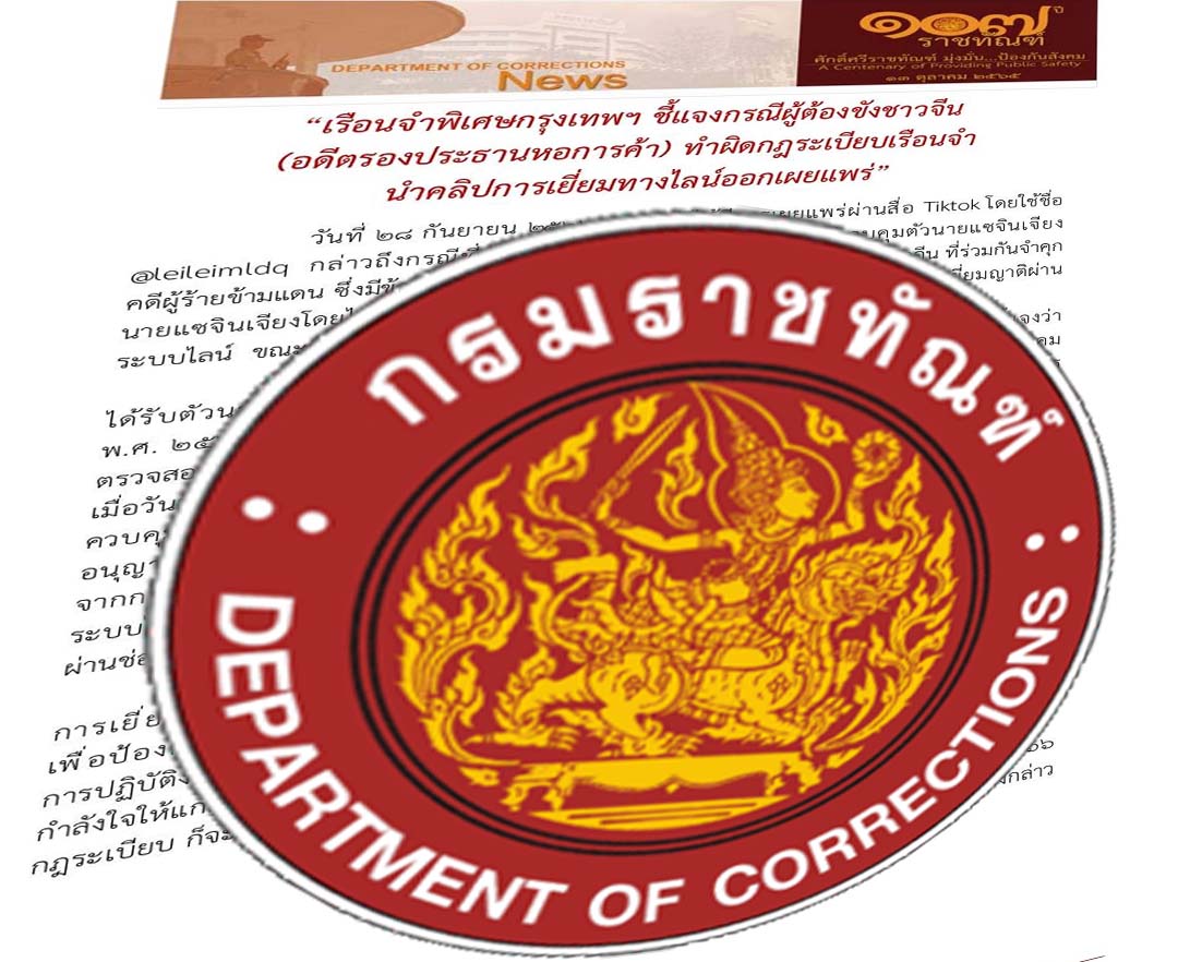 เรือนจำพิเศษกรุงเทพชี้ผู้ต้องขังชาวจีน ทำผิดนำคลิปเยี่ยมทางไลน์ออกเผยแพร่