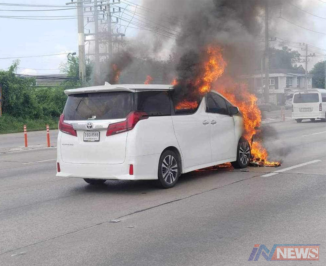 'เก๋งหรู'ไฟลุกวอดทั้งคันก่อนเข้านครปฐม เจ้าของบอกไฟเบรกโชว์ก่อนไฟลุกพรึ่บ