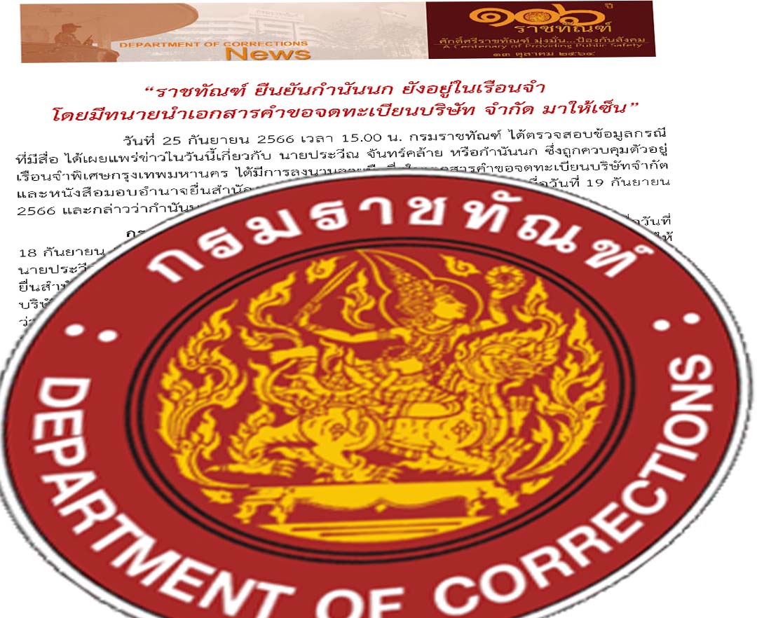 'ราชทัณฑ์'ยืนยันกำนันนกอยู่ในเรือนจำ ทนายนำเอกสารจดบริษัทฯมาให้เซ็น