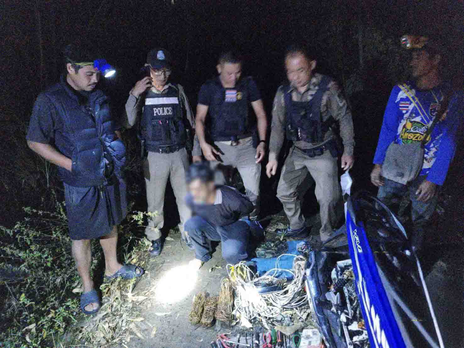 ตร.สภ.โพนเขวารวบแก๊งค์โจรลักสายไฟ หลังหนีการไล่ล่าเจอน้ำท่วมไปไม่รอด