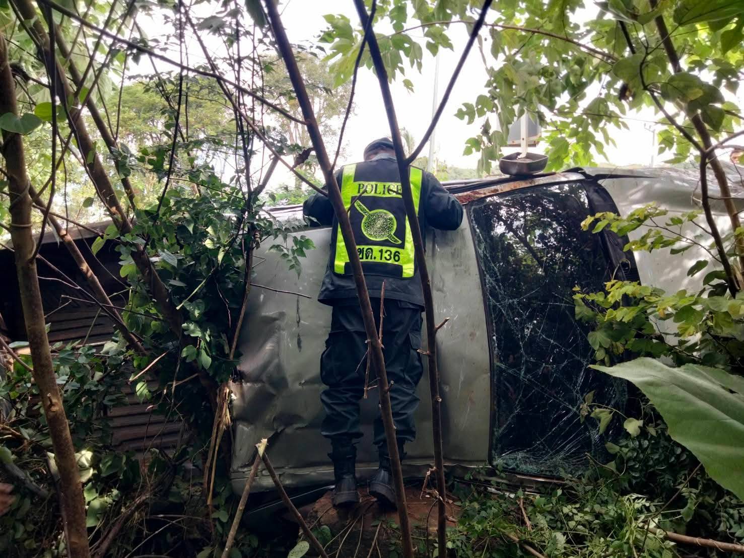 สลด!กระบะตู้ทึบขนแรงงานเถื่อนล้อหลุด แหกโค้งดับ3เจ็บ15คนขับหนีเข้าป่า