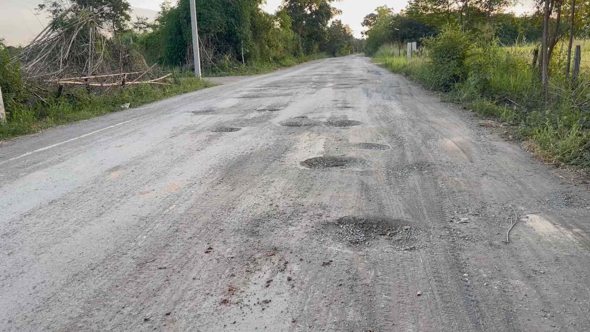 เหนื่อย!ถนนสายหนองปลาขาว-โนนขมิ้น เป็นหลุ่ม-บ่อสุดลำบาก/วอนดูแลด้วย