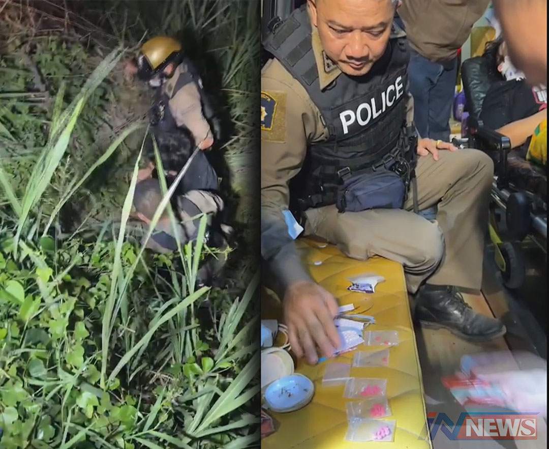 โจ๋ซิ่งมอเตอร์ไซด์หนีตำรวจหลังพบพิรุธ พุ่งตกคลองช่วยทุลักทุเลพบยาบ้า37เม็ด