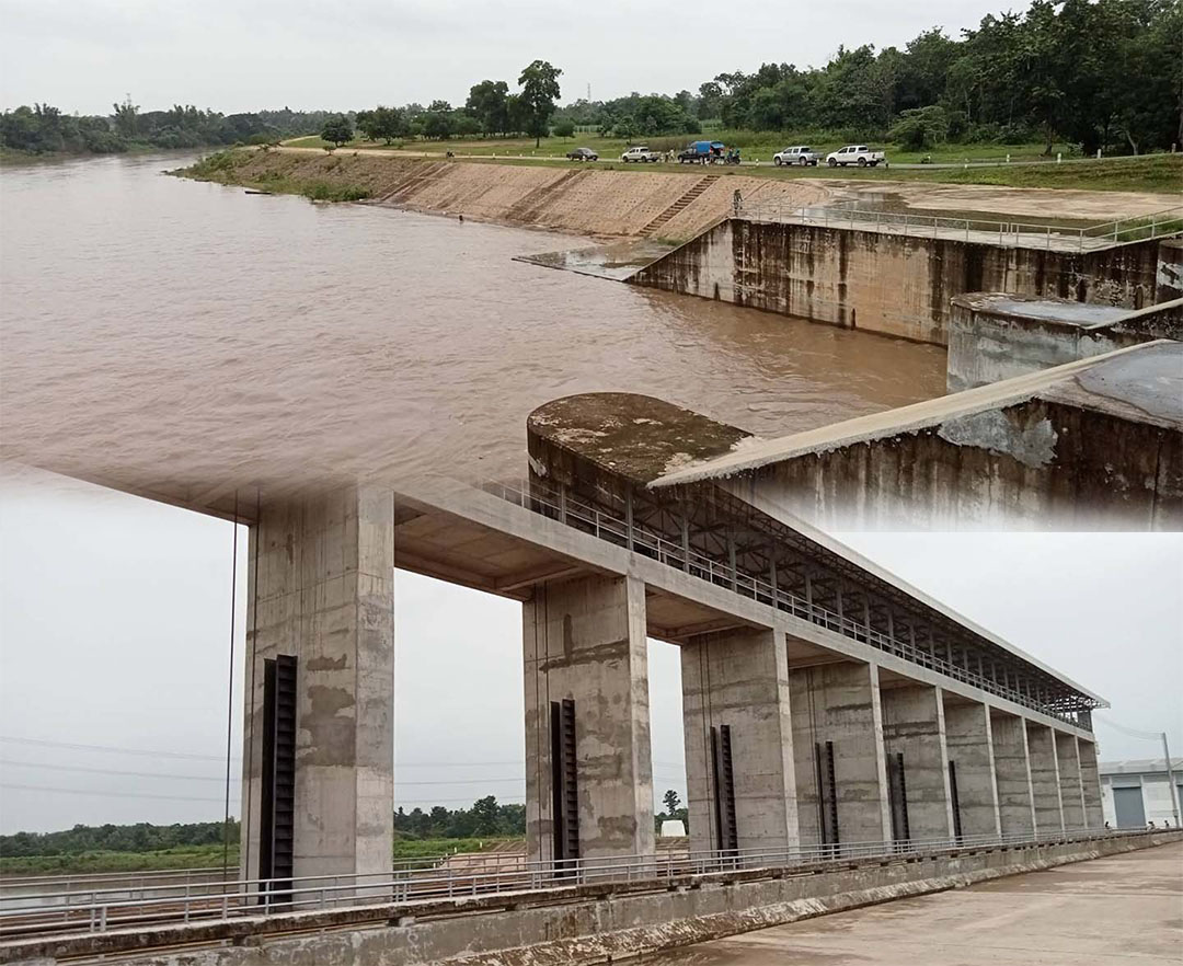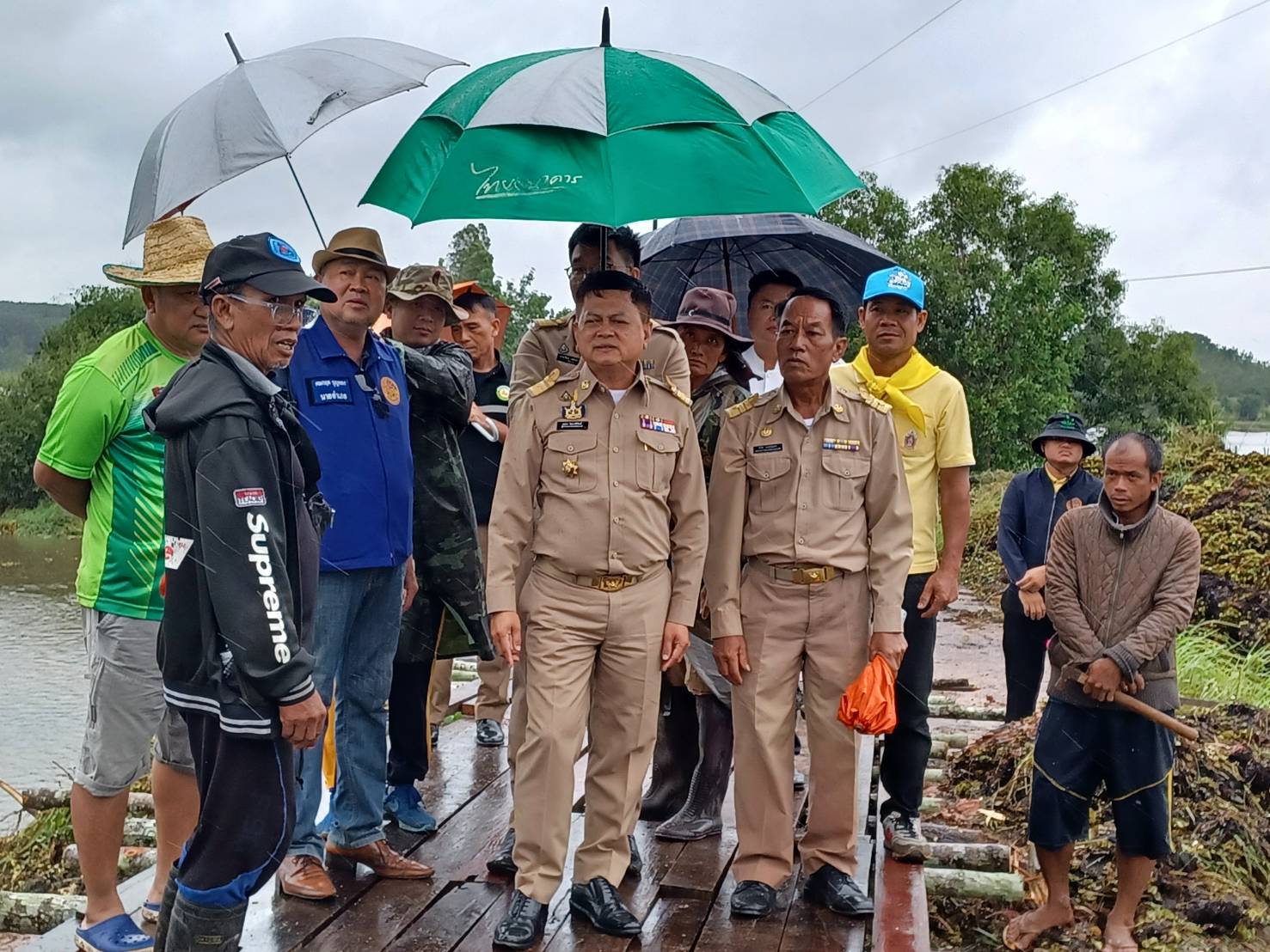 ผู้ว่าฯบึงกาฬฝ่าฝนดูระดับน้ำบึงโขงหลง ตรวจซ่อมสะพานอ่างเก็บน้ำห้วยบังบาตร