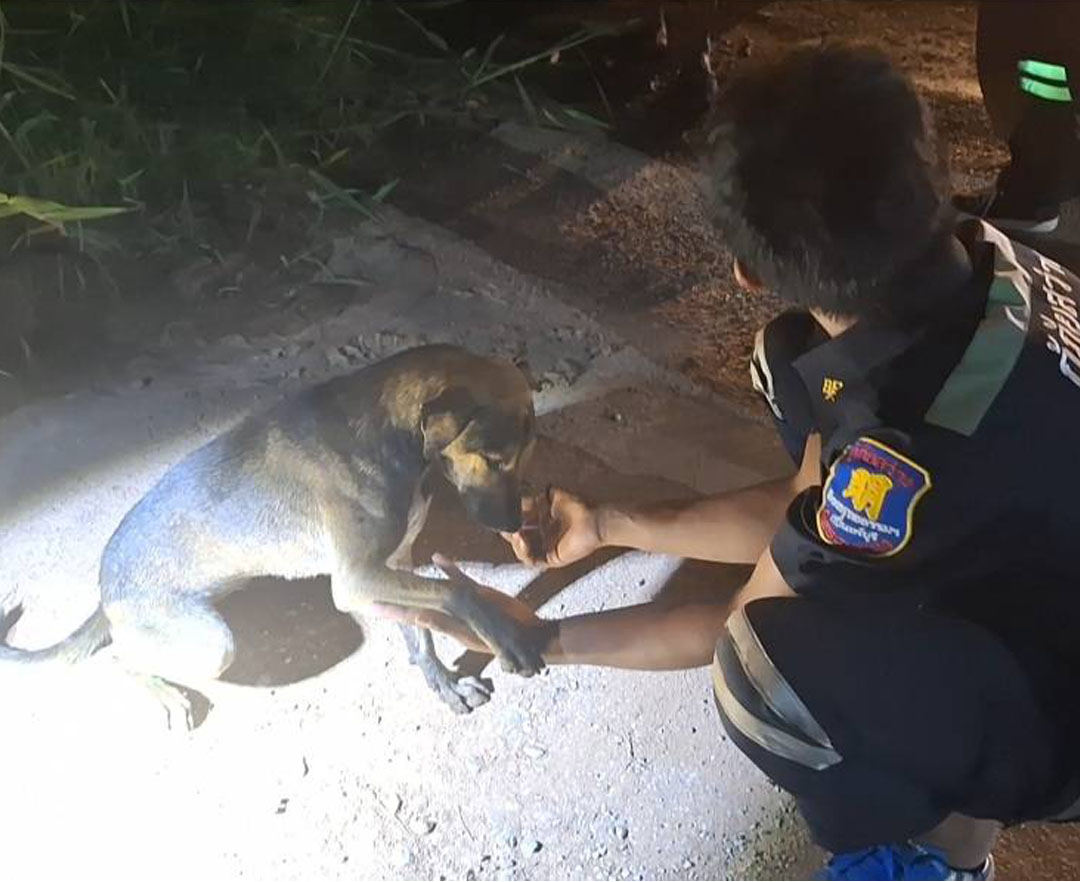 เอ็นดู!กู้ภัยช่วยสุนัขตกท่อขึ้นได้สุดดีใจ ยกขาหน้าจับมือขอบคุณกู้ภัย