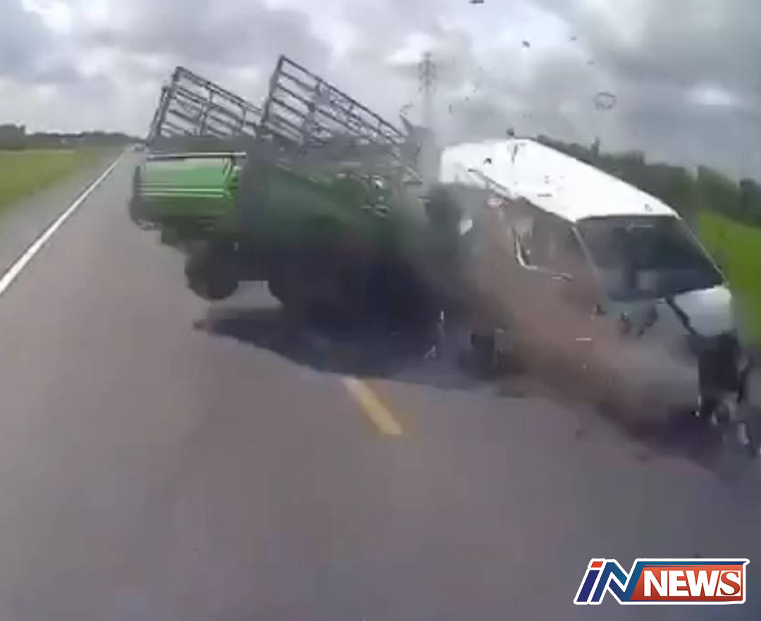 ฉะเชิงเทรา-ถนนสไลเดอร์ท่าถ่านเริ่มแผลงฤทธิ์รับฤดูฝน ทำรถตู้ขนแรงงานเพื่อนบ้านจากนนทบุรี มุ่งหน้าด่านชายแดน จ.สระแก้ว ลื่...