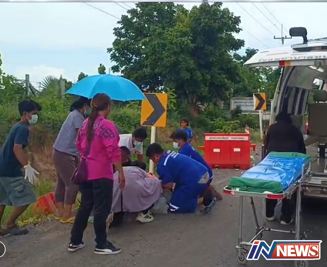 หนุ่มใหญ่ไม่ชินทางขับจยย.เสียหลักชนท้ายกระบะหวิดดับ