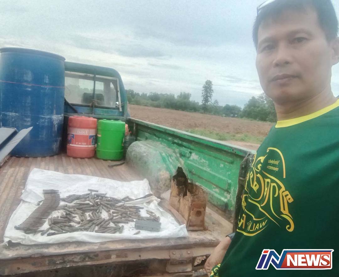 ปราจีนบุรี-ผงะ!รถแบ็คโฮปรับหน้าดิน พบอาวุธสงคราม M 16 - กล M 60 เต็มกล่องรวมกว่า 250 นัด