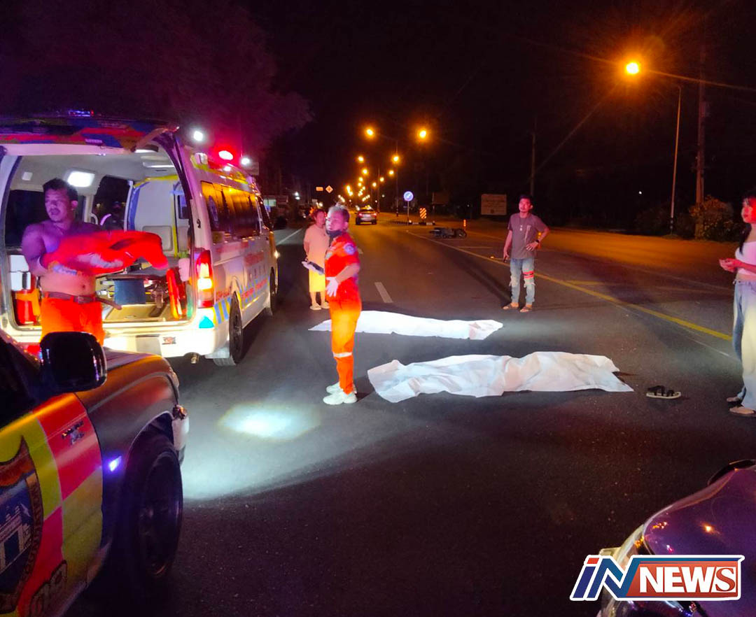 กาญจนบุรี-2 สาววัยรุ่นโชคร้ายขี่รถ จยย.กลับจากดูคอนเสิร์ต ถูกรถกระบะซิ่งชนท้าย เสียชีวิตคาที่ 2 ศพที่กาญจน์