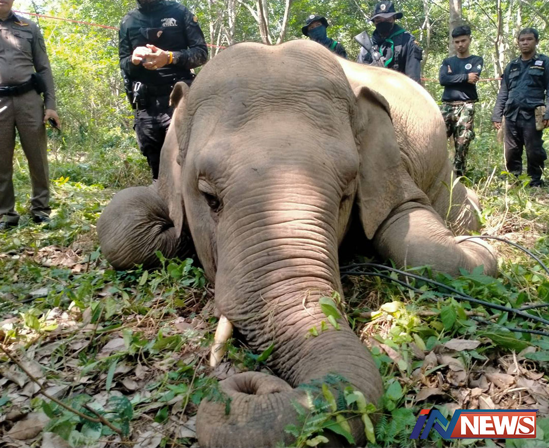 ฉะเชิงเทรา-ตายคาปาก ช้างพลายป่าหนัก 3 ตัน เดินมาคาบสายไฟในสวนยางแปดริ้วถูกช็อตดับกลางสายฝน เบื้องต้นพบเพียงคนงานและผู้ดู...