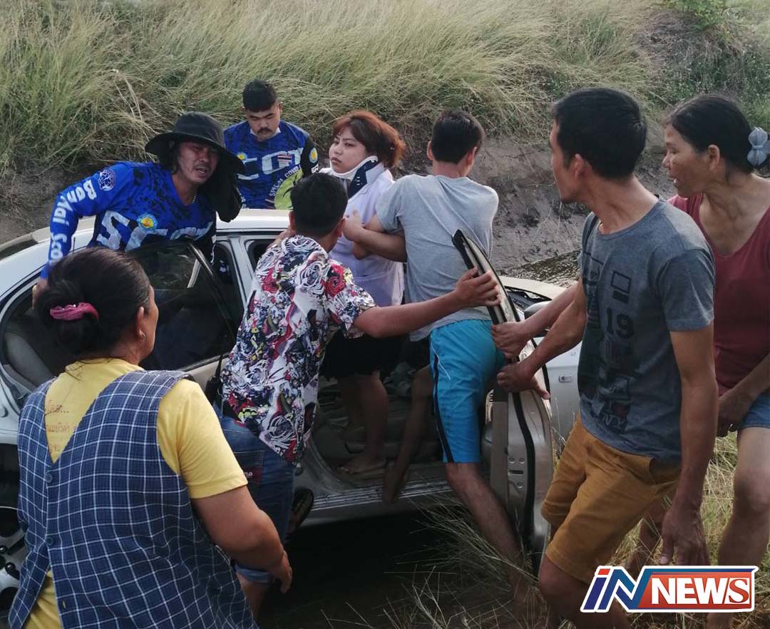 กาญจนบุรี-อุบัติเหตุหวิดตายหมู่ !! เก๋ง-กระบะชนกันตรง 3 แยกถนนเลียบริมคลองบ้านหัวเขาแรด กาญจนบุรี บาดเจ็บ 6 ราย เดชะบุญไ...