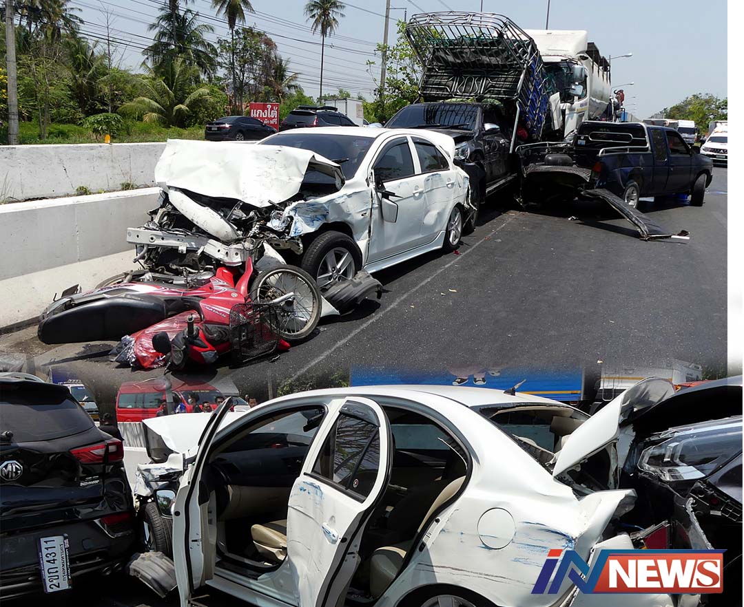 สิบล้อราชบุรีตีนผีเบรกแตกชน10คันรวด ส่งผลมีผู้ดับใต้ท้องรถ1เจ็บ4ราย