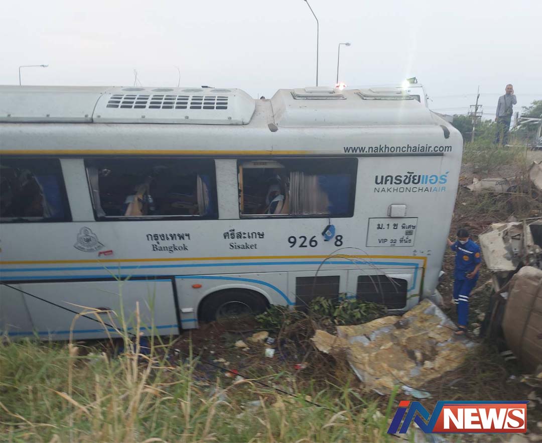 'นครชัยแอร์'เสียหลักพุ่งชนรถขนน้ำแข็ง แอร์สาวดับคาที่คาใจคนขับควงเที่ยววิ่ง