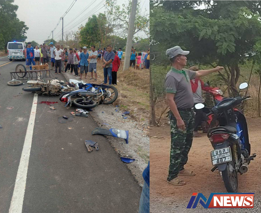 วัยรุ่นบุรีรัมย์ซิ่งจยย.แซงกระบะชนสนั่น ลุงขับมอไซค์ไปทุงนาดับคาที่