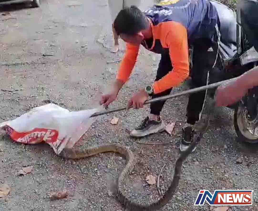 นครราชสีมา-นักท่องเที่ยวผวาพบงูจงอางหนีร้อนเลื้อยเข้าสระน้ำเจ้าหน้าที่กู้ภัยตามจับวุ่นด้านเจ้าของบ้านเชื่ออาจได้โชคบ้านเ...